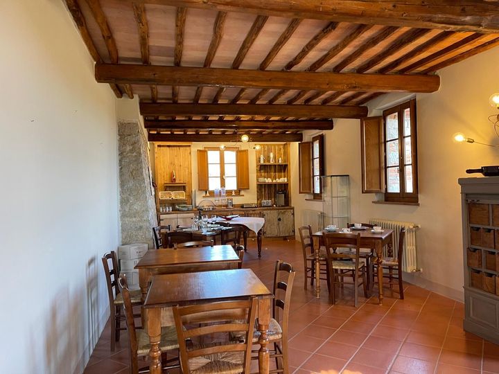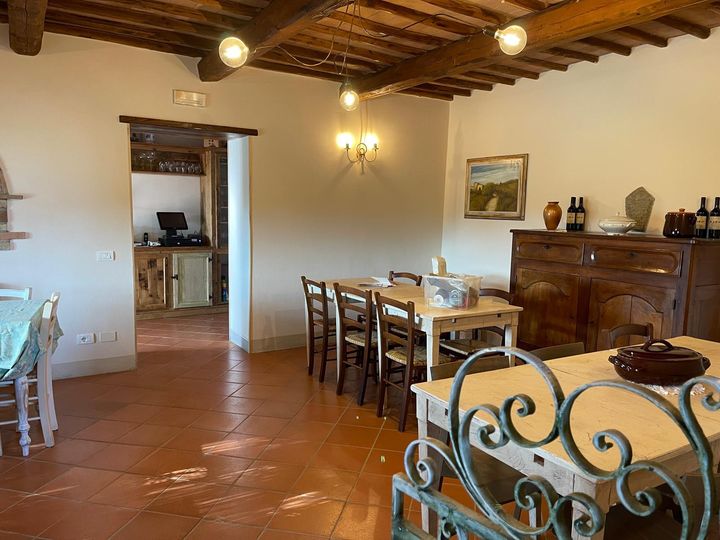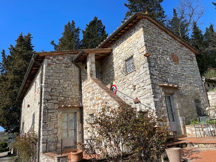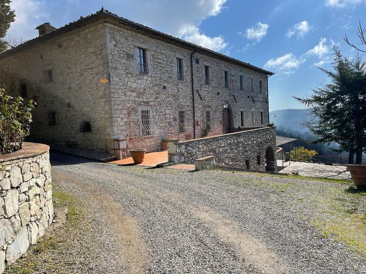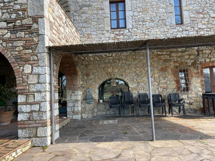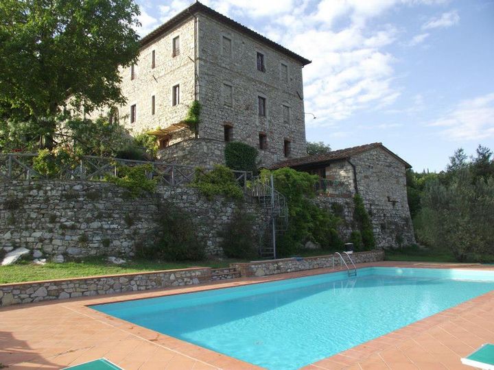 CHIANTI CLASSICO: CASTELLINA IN CHIANTI. A beautiful property located in the heart of Chianti Classico, between Siena and Florence and tucked into vineyards and olive groves. The property has been converted into agriturismo featuring 23 ha of land (whose 2 ha vineyards Merlot and Sangiovese) and 600 olive trees. The complex consists of three buildings along with a lovely church and the pool. The main villa spreads over four floors and comprises the reception hall, some apartments, bedrooms with en-suite bathrooms, the equipped restaurant with a panoramic terrace , utilities rooms, cellar and warehouses; the two addional detached buildings are currently used either for private home or additional bedrooms.