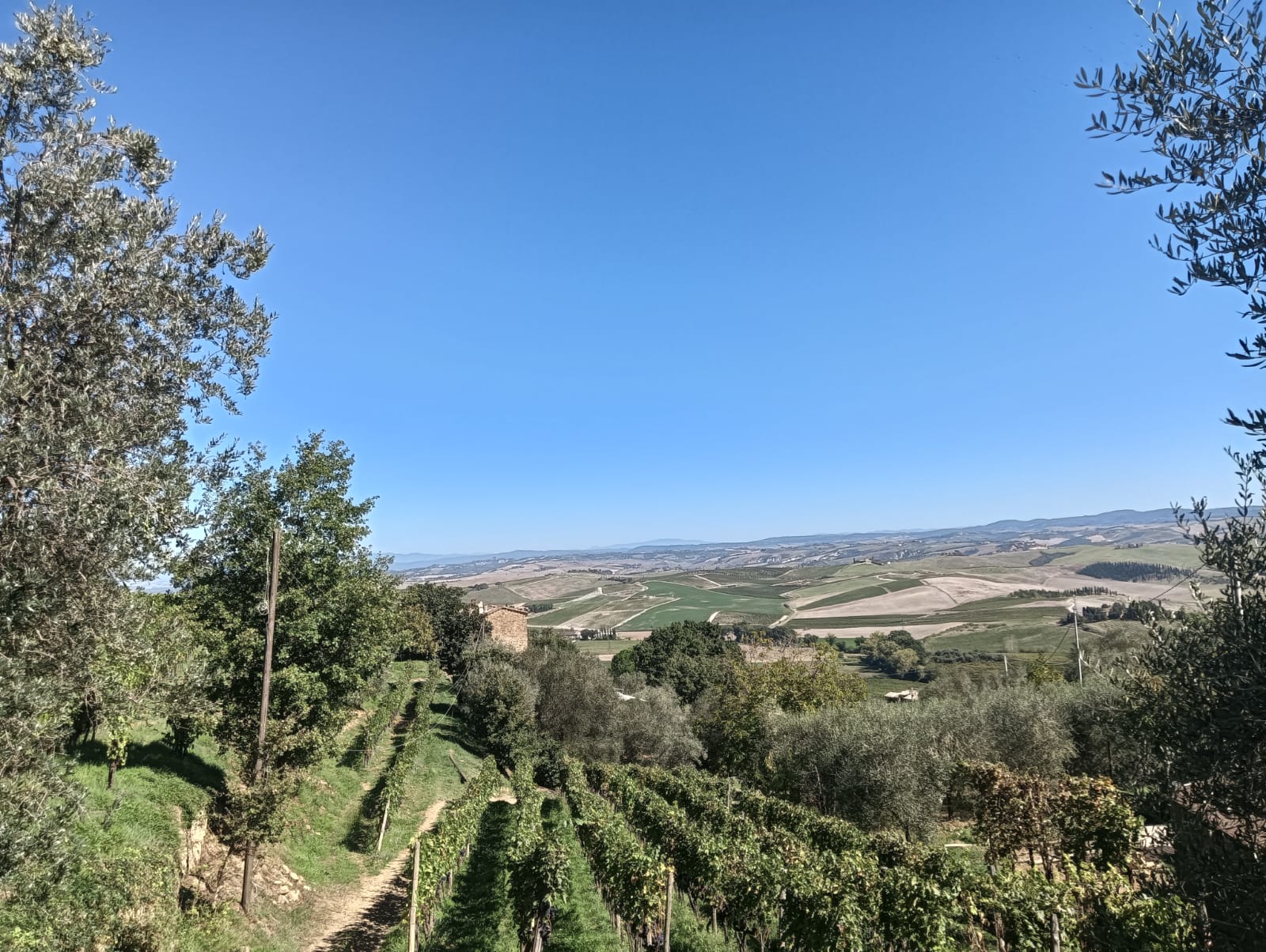 VAL D'ORCIA: MONTALCINO – Country house with vineyard and panoramic views for sale
