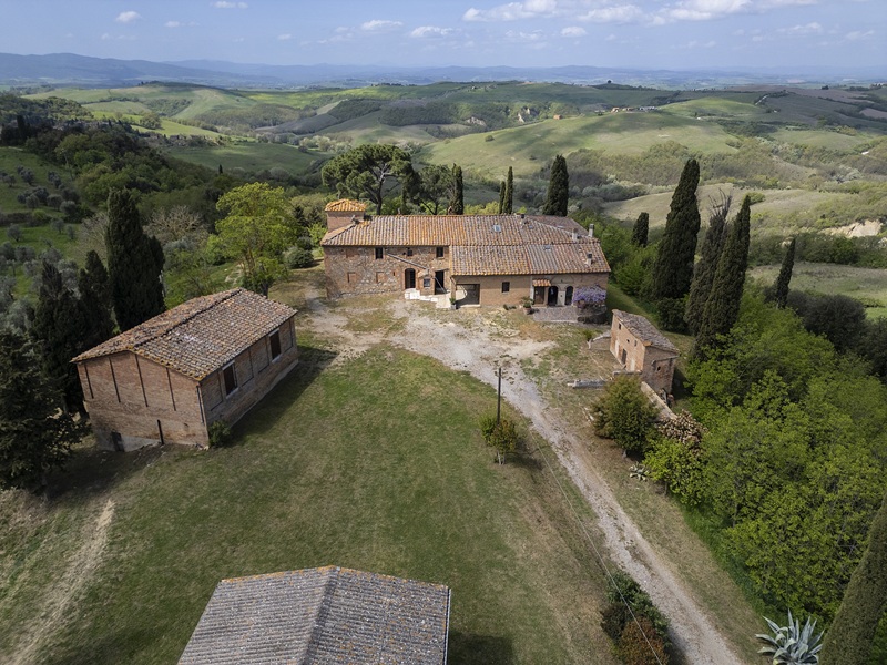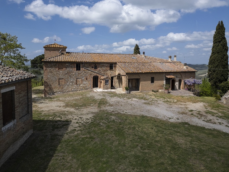 1) Hilltop farmhouse overlooking the spectacular surrounding landscape, reminiscent of traditional Leopoldine farmhouses dating back to the late 19th century. The complex is arranged around a central courtyard and comprises three units (two of which are partially restored), along with a former barn and other rural annexes/outbuildings and canopies, for a total surface area of over 1,000 sq.m.